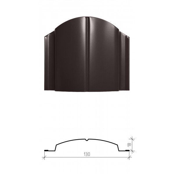 Металлический штакетник «ЕВРОПЛАНКА» имеет максимальную из предлагаемых на рынке ширину планки — 130 мм. Это позволяет существенно сэкономить на количестве планок, применяемых в конструкции забора.
