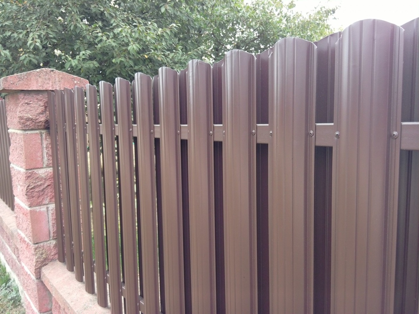 Покрытие из полиэстера благоприятно сказывается на сроке службы забора, такое ограждение не выцветет под палящим солнцем и не потеряет привлекательного внешнего вида под дождем или снегом.